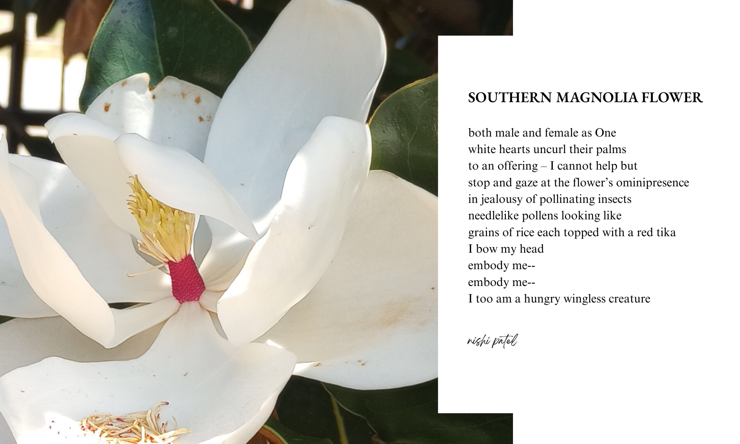 So…why does poetry matter? I could tell you a story that during my morning walk, I saw a southern magnolia flower, and it made me think of it as something holy. Or, I could have you read my poem, Southern Magnolia Flower, and hope that you feel the sentiment embodying you…perhaps even hope? Poetry, in my opinion, makes a difference.